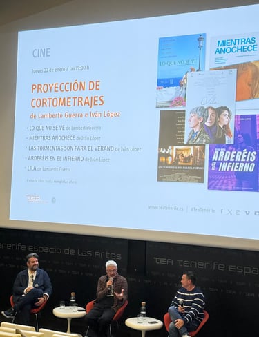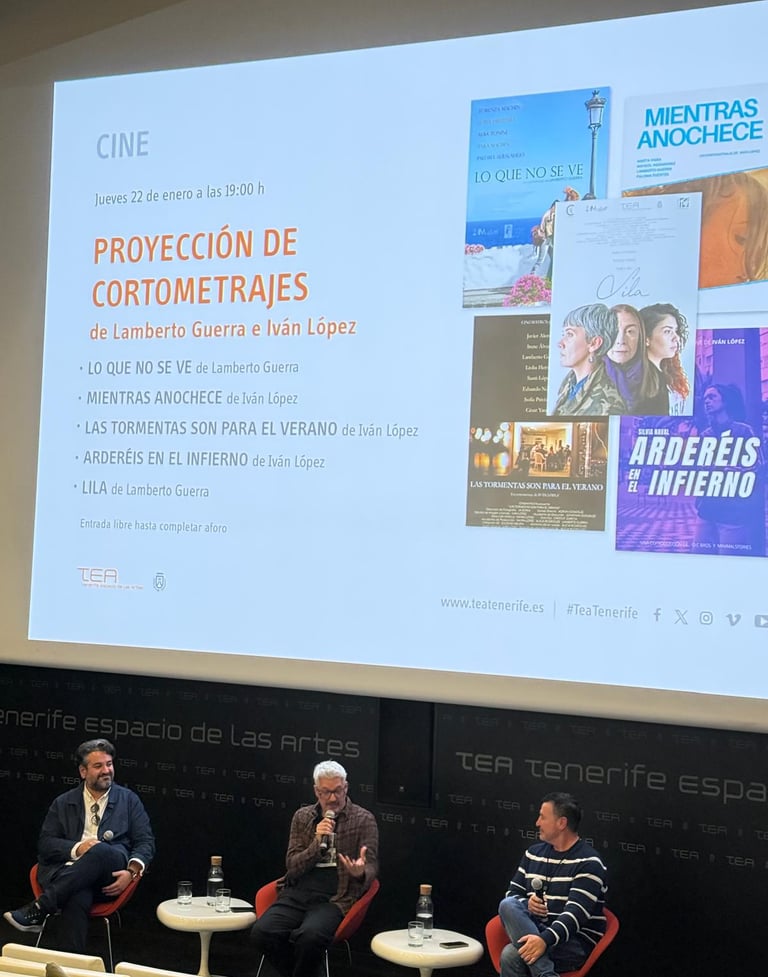 El pasado 22 de enero tuvo lugar en la sala del TEA de Tenerife, la proyección de una muestra de cortometrajes realizados por Lamberto Guerra e Iván López en los últimos 15 años.